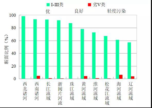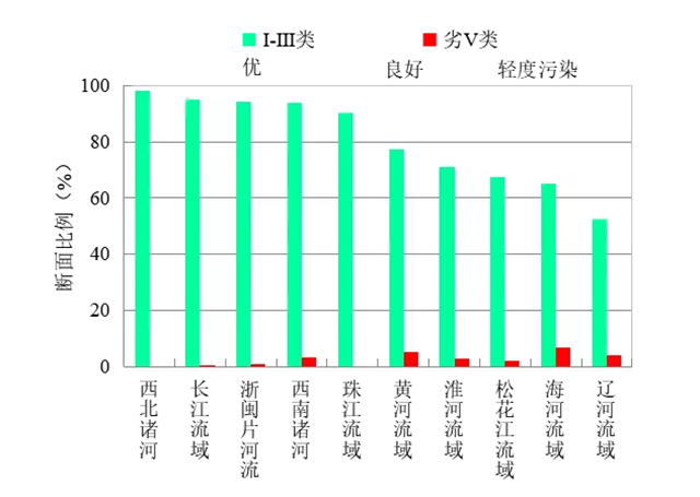 3月,長(zhǎng)江、黃河、珠江、松花江、淮河、海河、遼河等七大流域及西北諸河、西南諸河和浙閩片河流Ⅰ-Ⅲ類水質(zhì)斷面比例為81.9%,同比上升6.5個(gè)百分點(diǎn);劣Ⅴ類為2.0%,同比下降3.8個(gè)百分點(diǎn)。主要污染指標(biāo)為化學(xué)需氧量、高錳酸鹽指數(shù)和五日生化需氧量。其中,西北、西南諸河、長(zhǎng)江流域和浙閩片河流水質(zhì)為優(yōu),珠江和黃河流域水質(zhì)良好,淮河、松花江、海河和遼河流域?yàn)檩p度污染。