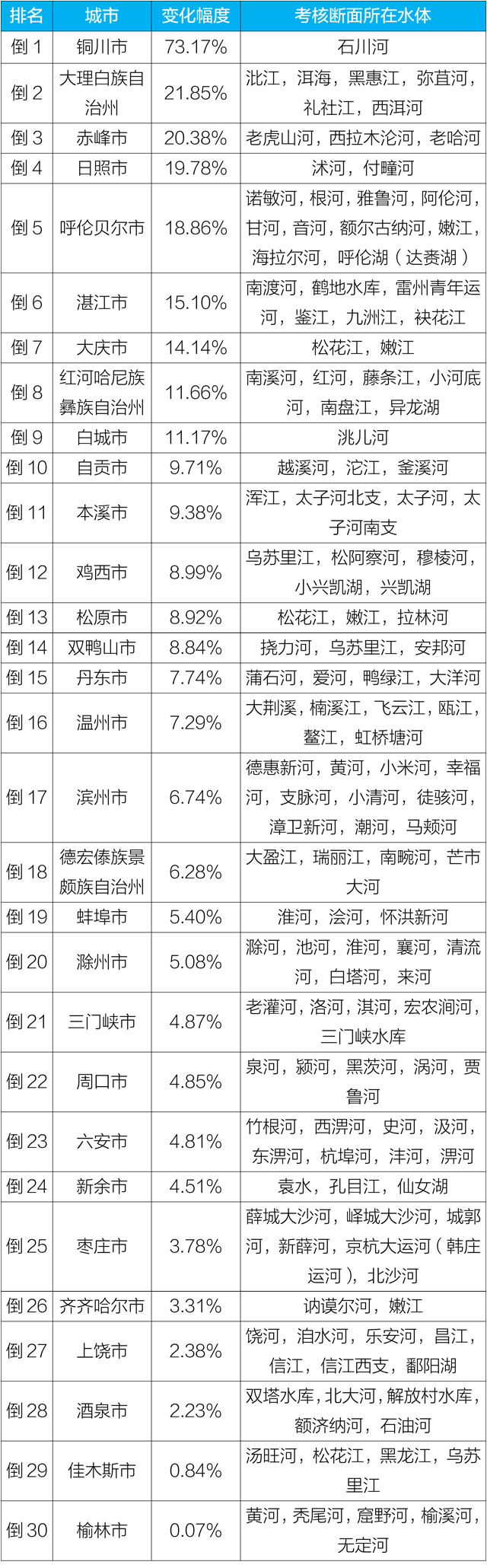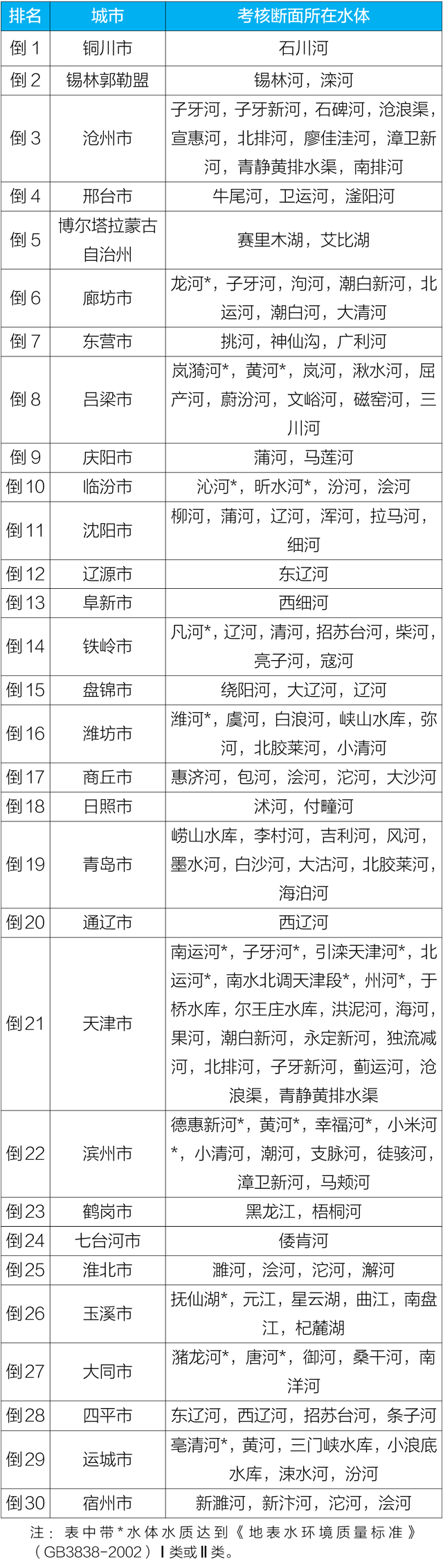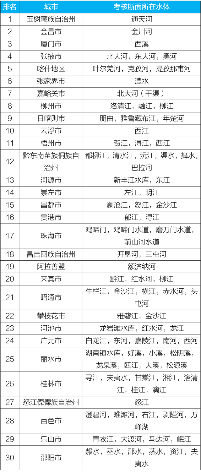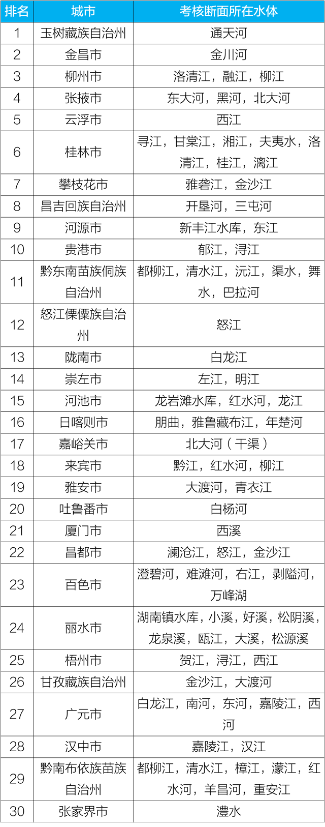 地級(jí)及以上城市國(guó)家地表水考核斷面排名