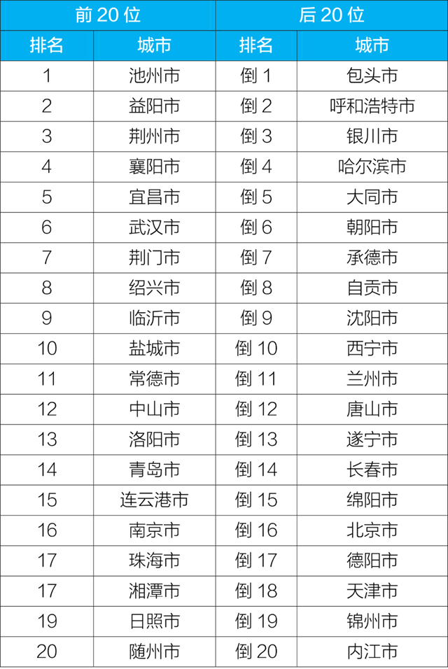 1-3月,168個(gè)重點(diǎn)城市中包頭、呼和浩特、銀川市等城市空氣質(zhì)量改善幅度相對(duì)較差(從倒數(shù)第1名至倒數(shù)第20名);池州、益陽(yáng)、荊州市等城市空氣質(zhì)量改善幅度相對(duì)較好(從第1名至第20名,見附表9)。