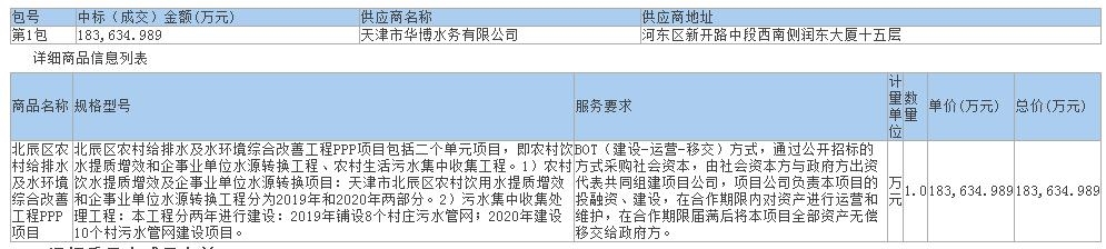 從天津市政府采購網(wǎng)獲悉,天津市華博水務(wù)有限公司預(yù)中標天津市北辰區(qū)農(nóng)村給排水及水環(huán)境綜合改善工程PPP項目。