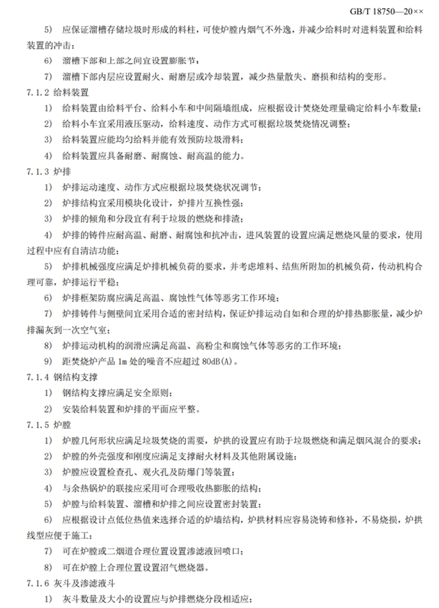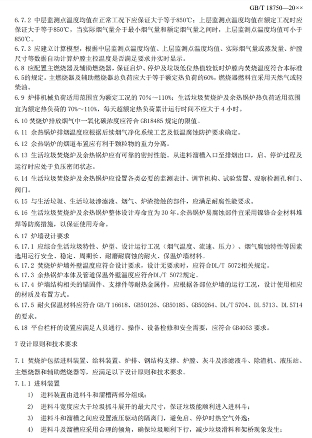 ——取消原標(biāo)準(zhǔn)附錄A《機(jī)械爐排式生活垃圾焚燒爐技術(shù)要求》,在設(shè)計(jì)原則和技術(shù)要求中規(guī)定,對個(gè)別條款、文字作了增減修改。