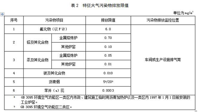 有組織排放:關(guān)于常規(guī)的大氣污染物排放,《排放標(biāo)準(zhǔn)》要求顆粒物排放濃度≤20mg/m3,二氧化硫排放濃度≤80mg/m3,氮氧化物排放濃度≤180mg/m3,煙氣黑度不得超過林格曼黑度1級。特征大氣污染物排放限值如下表,污染物排放監(jiān)控的位置均要在車間或生產(chǎn)設(shè)施排氣筒處。