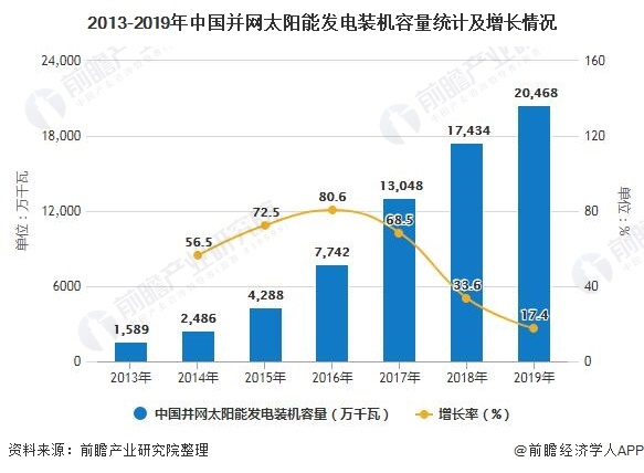 3、2019年全年中國(guó)并網(wǎng)太陽(yáng)能發(fā)電裝機(jī)容量20468萬(wàn)千瓦