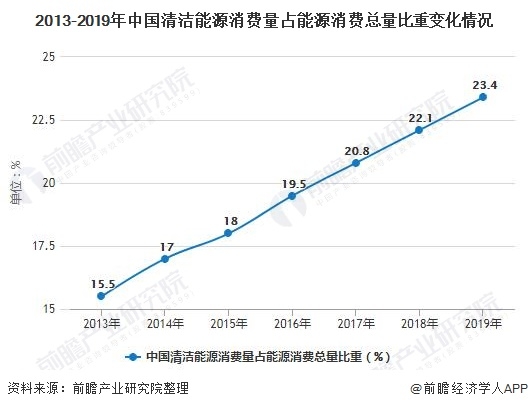 1、2019年中國(guó)清潔能源消費(fèi)占比達(dá)到23.4%