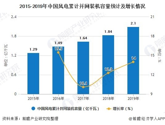 2、2019年全年中國(guó)風(fēng)電累計(jì)裝機(jī)容量2.10億千瓦