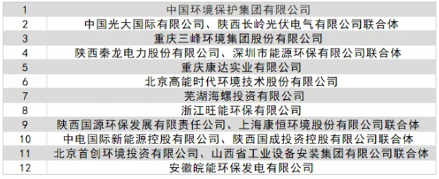 2019年12月27日,該項(xiàng)目發(fā)布資格預(yù)審結(jié)果公告,12大垃圾焚燒領(lǐng)域知名企業(yè)入圍,具體名單如下: