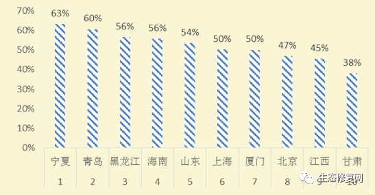 “十三五”擬封場處理能力占當前處理能力比例排名前十的省或直轄市