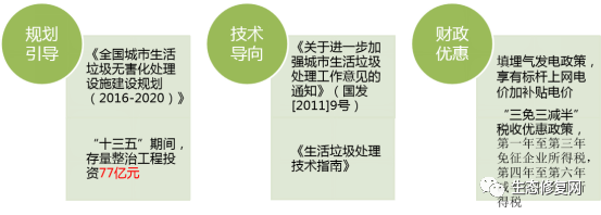 注:統(tǒng)計數(shù)據來自于十二五期間全國1236座非正規(guī)填埋場治理方案5、政府提供多方位政策支持