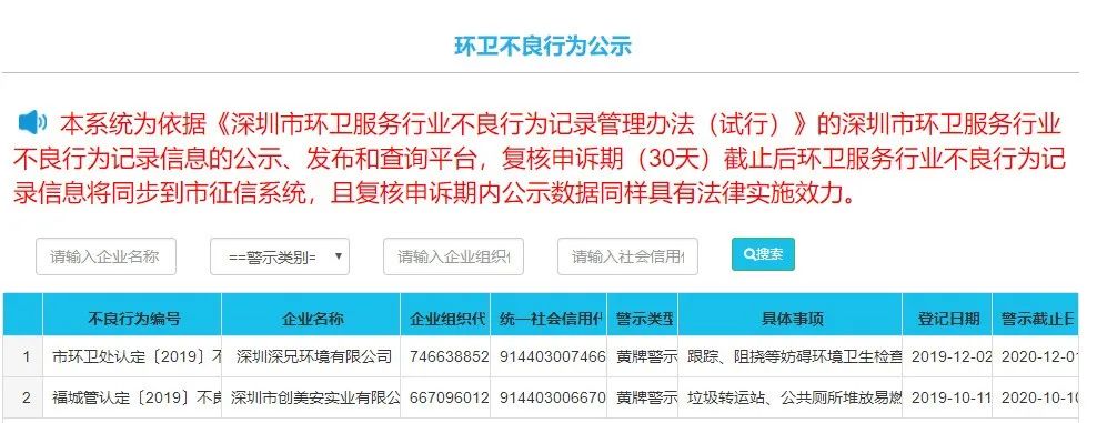 筆者從深圳市城市管理和綜合執(zhí)法局網(wǎng)站看到,施行半年左右的不良行為記錄管理辦法后,已經(jīng)由兩家企業(yè)“上榜”。
