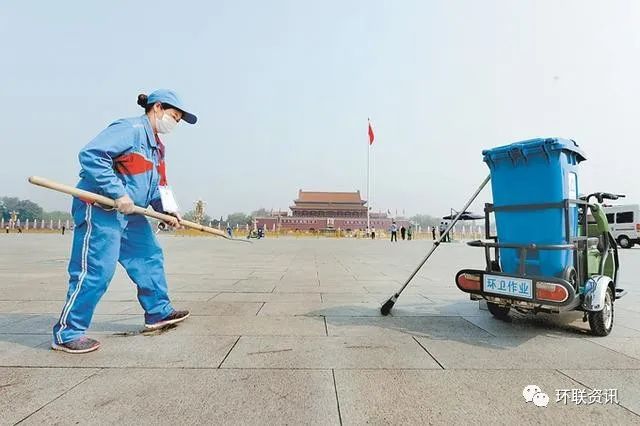 “您已進(jìn)入廣場(chǎng)地區(qū),請(qǐng)將手里的垃圾按分類要求投入相應(yīng)垃圾箱,共同愛護(hù)廣場(chǎng)環(huán)境。”今天一早,走進(jìn)天安門廣場(chǎng)的游客都會(huì)聽到這樣一段提示語,提醒大家注意垃圾分類。幾臺(tái)電動(dòng)保潔清運(yùn)車在廣場(chǎng)上有序穿梭,車后掛著藍(lán)色或銀色的分類垃圾桶。
