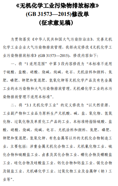 無(wú)機(jī)化學(xué)工業(yè)污染物排放標(biāo)準(zhǔn)修改單(征求意見(jiàn)稿)