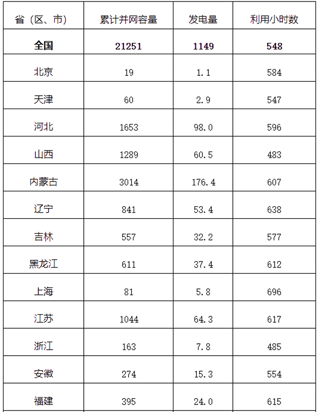 一季度風電發(fā)電量1149億千瓦時,同比增長10.4%;全國風電平均利用小時數(shù)548小時,利用小時數(shù)較高的地區(qū)是云南(988小時)、四川(882小時)和廣西(748小時)。