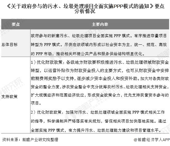 污水治理也一直是政府部門重點(diǎn)關(guān)注的環(huán)境問題。2017年,財政部、住房城鄉(xiāng)建設(shè)部、農(nóng)業(yè)部、環(huán)境保護(hù)部聯(lián)合印發(fā)《關(guān)于政府參與的污水、垃圾處理項目全面實(shí)施PPP模式的通知》,《通知》指出:為促進(jìn)污水、垃圾處理行業(yè)健康發(fā)展,在污水、垃圾處理領(lǐng)域全方位引入市場機(jī)制,政府參與的新建污水、垃圾處理項目全面實(shí)施PPP模式。