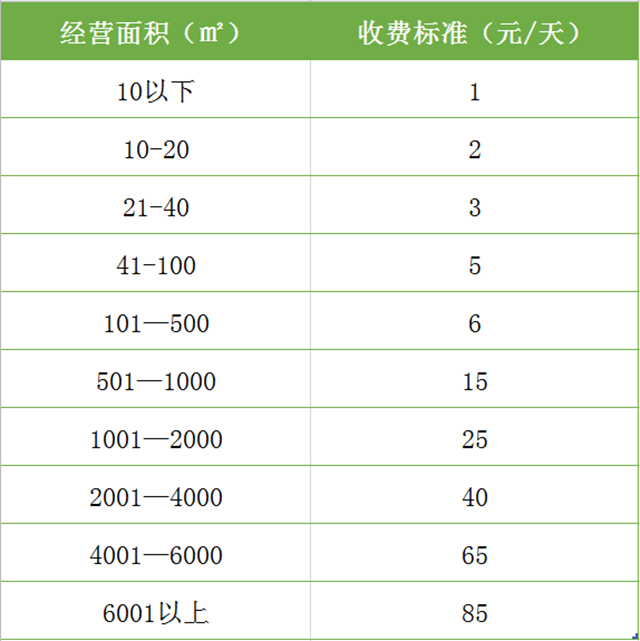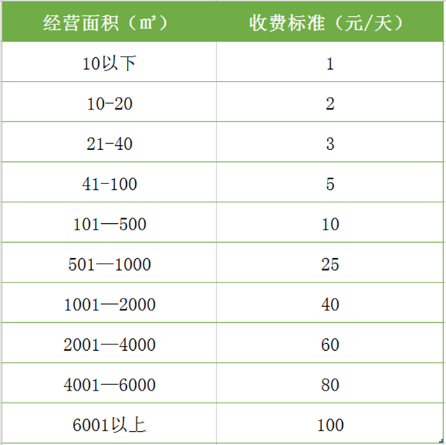 臨時經營場所(展銷、經營性演出、募捐等)每平方米每天1元。