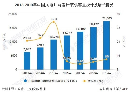 1、2019年中國風(fēng)電行業(yè)投資規(guī)模突破千億元