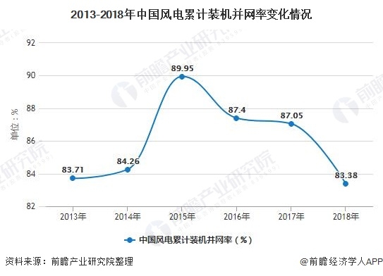 根據(jù)數(shù)據(jù)可以看出,2013-2018年中國風(fēng)電累計裝機并網(wǎng)率波動變化,截止2018年末,我國風(fēng)電累計裝機并網(wǎng)率為83.38%。