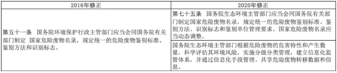 《中華人民共和國固體廢物污染環(huán)境防治法》2020修訂版對于危廢部分的修訂主要在于完善危險廢物污染環(huán)境防治制度。包括規(guī)定危險廢物分級分類管理、信息化監(jiān)管體系、區(qū)域性集中處置設施場所建設等內容。加強危險廢物跨省轉移管理,通過信息化手段管理、共享轉移數(shù)據(jù)和信息,規(guī)定電子轉移聯(lián)單,明確危險廢物轉移管理應當全程管控、提高效率。