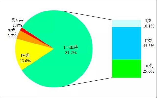 1-4月,1940個(gè)國家地表水考核斷面中,水質(zhì)優(yōu)良(Ⅰ-Ⅲ類)斷面比例為81.2%,同比上升6.2個(gè)百分點(diǎn);劣Ⅴ類斷面比例為1.4%,同比下降4.1個(gè)百分點(diǎn)。主要污染指標(biāo)為化學(xué)需氧量、總磷和高錳酸鹽指數(shù)。