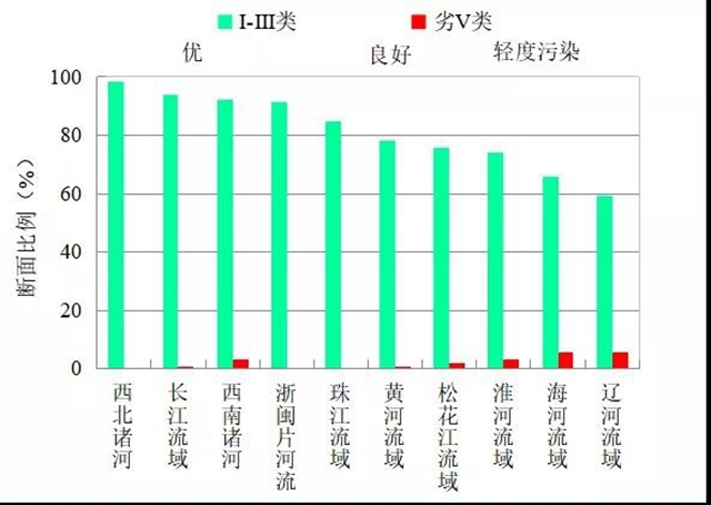 1-4月,長(zhǎng)江、黃河、珠江、松花江、淮河、海河、遼河等七大流域及西北諸河、西南諸河和浙閩片河流Ⅰ-Ⅲ類水質(zhì)斷面比例為84.5%,同比上升7.2個(gè)百分點(diǎn);劣Ⅴ類為1.2%,同比下降4.9個(gè)百分點(diǎn)。主要污染指標(biāo)為化學(xué)需氧量、高錳酸鹽指數(shù)和氨氮。其中,西北諸河、長(zhǎng)江流域、浙閩片河流、西南諸河和珠江流域水質(zhì)為優(yōu),黃河和淮河流域水質(zhì)良好,松花江、海河和遼河流域?yàn)檩p度污染。