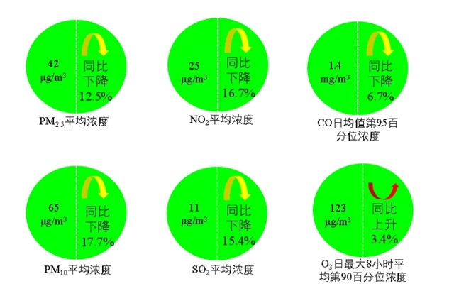 1-4月,全國337個(gè)地級(jí)及以上城市平均優(yōu)良天數(shù)比例為84.8%,同比上升5.0個(gè)百分點(diǎn);129個(gè)城市環(huán)境空氣質(zhì)量達(dá)標(biāo),同比增加26個(gè);PM2.5濃度為42微克/立方米,同比下降12.5%;PM10濃度為65微克/立方米,同比下降17.7%;O3濃度為123微克/立方米,同比上升3.4%;SO2濃度為11微克/立方米,同比下降15.4%;NO2濃度為25微克/立方米,同比下降16.7%;CO濃度為1.4毫克/立方米,同比下降6.7%。