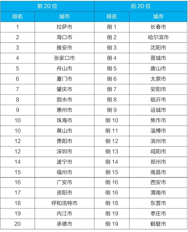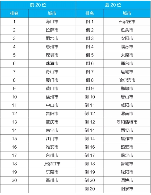 2020年4月168個(gè)重點(diǎn)城市環(huán)境空氣排名前20位和后20位城市名單