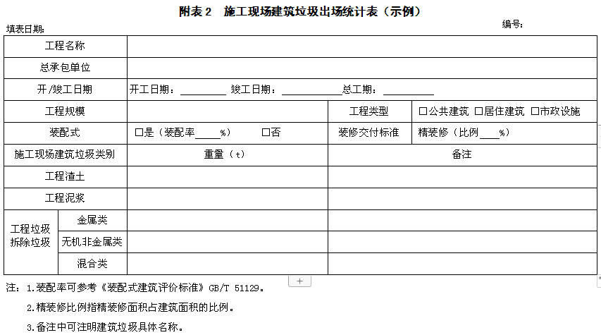 7.2 建筑垃圾每次稱重(計量)后,應(yīng)及時記錄且須按各類施工現(xiàn)場建筑垃圾實際處理情況填寫,并保持記錄的連續(xù)性、真實性和準(zhǔn)確性。記錄應(yīng)留存?zhèn)洳?。記錄分為日常記錄表和統(tǒng)計表,具體可參考附錄B表1、2。