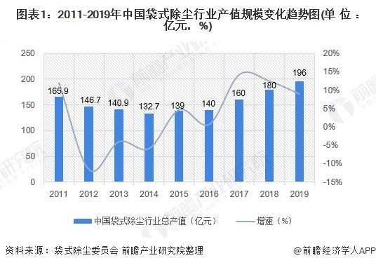 一、2019年中國(guó)袋式除塵行業(yè)產(chǎn)值達(dá)196億元