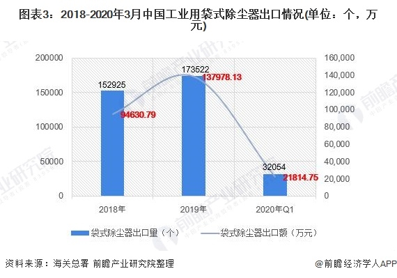 經(jīng)過海關(guān)代碼查詢,2019年工業(yè)用袋式除塵器(84213922)的出口數(shù)量為17.35萬個(gè),出口額為13.80億元;截至2020年3月工業(yè)用袋式除塵器(84213922)的出口數(shù)量為3.21萬個(gè),出口額為2.18億元。