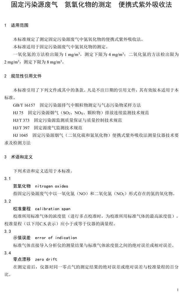 為貫徹《中華人民共和國環(huán)境保護(hù)法》和《中華人民共和國大氣污染防治法》,保護(hù)生態(tài)環(huán)境,保障人體健康,規(guī)范固定污染源廢氣中氮氧化物的便攜式測(cè)定方法,制定本標(biāo)準(zhǔn)。本標(biāo)準(zhǔn)規(guī)定了測(cè)定固定污染源廢氣中氮氧化物的便攜式紫外吸收法。本標(biāo)準(zhǔn)的附錄A為資料性附錄。本標(biāo)準(zhǔn)為首次發(fā)布。