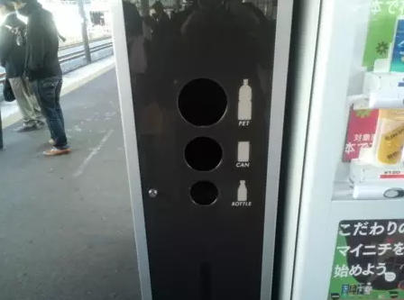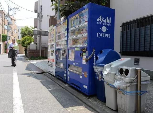 另外日本的自動售貨機是很普遍的,所以很多地方都會在售貨機旁邊設(shè)置垃圾回收箱。