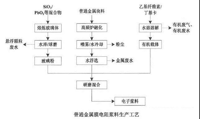 電阻漿料主要由導(dǎo)電相(功能相)、黏結(jié)相(玻璃相)和有機(jī)載體三部分組成。生產(chǎn)廢氣中的主要污染物為VOCs 、粉塵。
