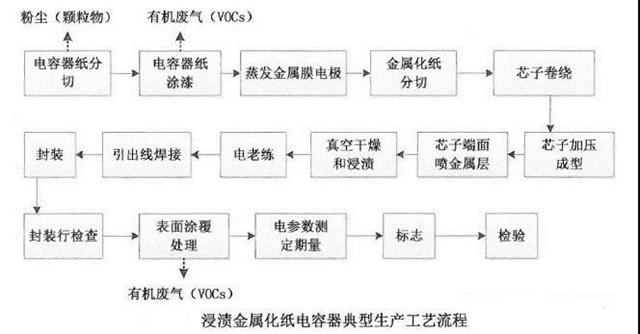 有機(jī)介質(zhì)電容器紙涂漆、電容器表面涂覆處理時(shí)有VOCs廢氣產(chǎn)生。