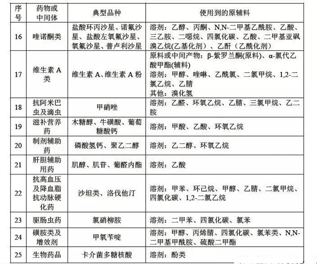 制藥企業(yè)使用頻率前20位的有機(jī)溶劑