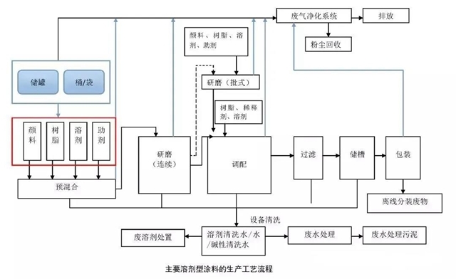 涂料生產(chǎn)中主要原料包括以下部分:成膜物質(zhì)(基料)、溶劑、顏料、助劑。