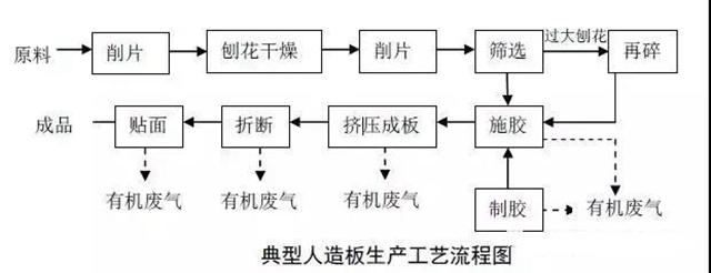 人造板加工行業(yè)VOCs廢氣主要來源于以下環(huán)節(jié):(1)膠合板VOCs的排放主要在單板干燥過程及制膠、施膠、熱壓過程;(2)刨花板主要為涂料、熱壓和鋸邊過程中產(chǎn)生的甲醛等;(3)中密度纖維板有機(jī)廢氣主要包括熱磨制漿過程產(chǎn)生的有機(jī)廢氣、施膠和纖維干燥過程產(chǎn)生的有機(jī)物、纖維板熱壓過程產(chǎn)生的有機(jī)廢氣。
