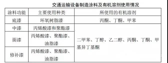 交通運(yùn)輸設(shè)備制造過程中最大的產(chǎn) VOCs 環(huán)節(jié)是涂裝工藝。底涂普遍采用陰極電泳涂裝,中涂、面涂少數(shù)企業(yè)使用水性涂料涂裝,多數(shù)為溶劑型涂料涂裝。