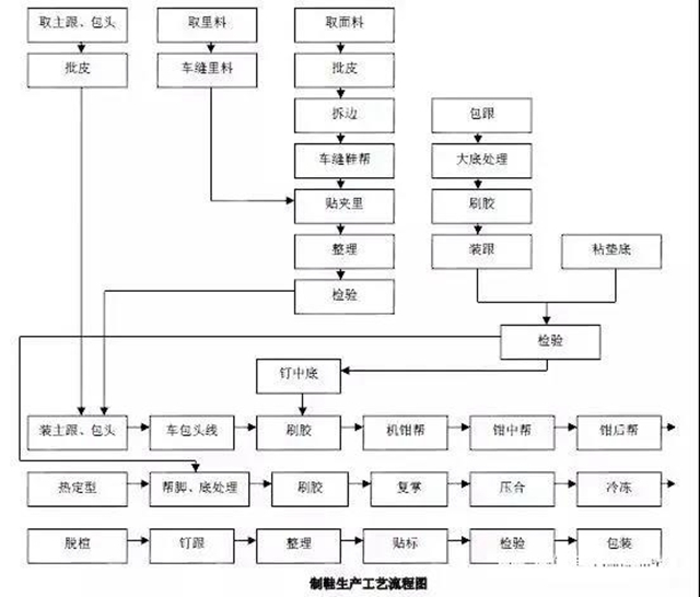 制鞋生產(chǎn)過程主要包括鞋面的加工和鞋底加工,再經(jīng)流水線成型組合。