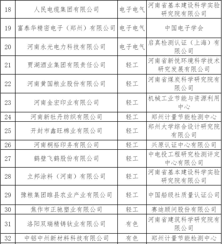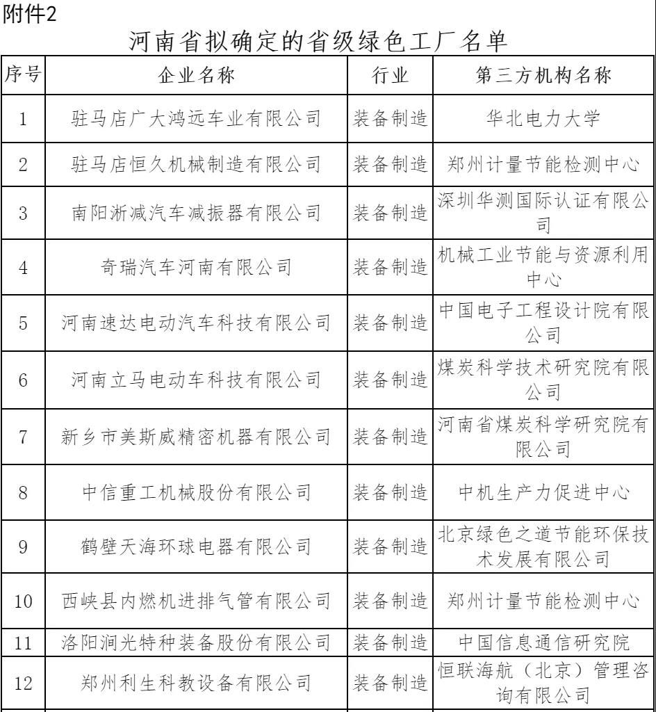 2.河南省擬確定的省級綠色工廠名單