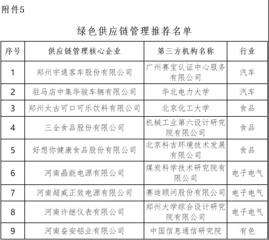 5.河南省擬推薦參評國家級綠色供應鏈名單