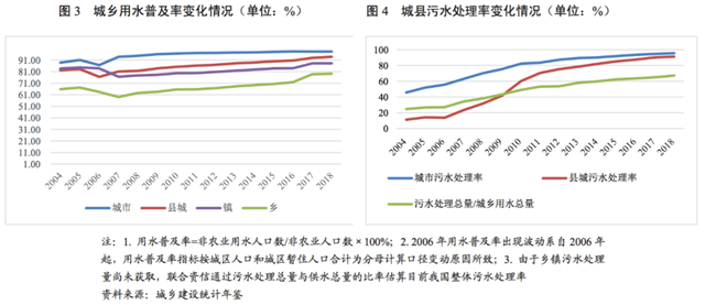 鄉(xiāng)鎮(zhèn)供水方面,2018年,我國(guó)鄉(xiāng)和建制鎮(zhèn)用水人口1.8億人,同比增長(zhǎng)1.8%,鄉(xiāng)鎮(zhèn)年用水總量145.8億立方米,同比增長(zhǎng)0.9%。2018年,我國(guó)鄉(xiāng)鎮(zhèn)的用水普及率分別為79.2%和88.1%,較城市98%的用水普及率尚有差異,鄉(xiāng)鎮(zhèn)供水市場(chǎng)尚有一定開(kāi)發(fā)空間。