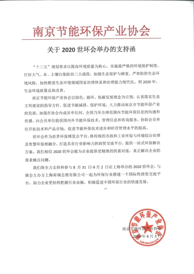 2020世環(huán)會確定將于2020年8月31日-9月2日在上海國家會展中心(虹橋)舉辦,各環(huán)保行業(yè)協(xié)會紛紛發(fā)聲支持2020世環(huán)會。
