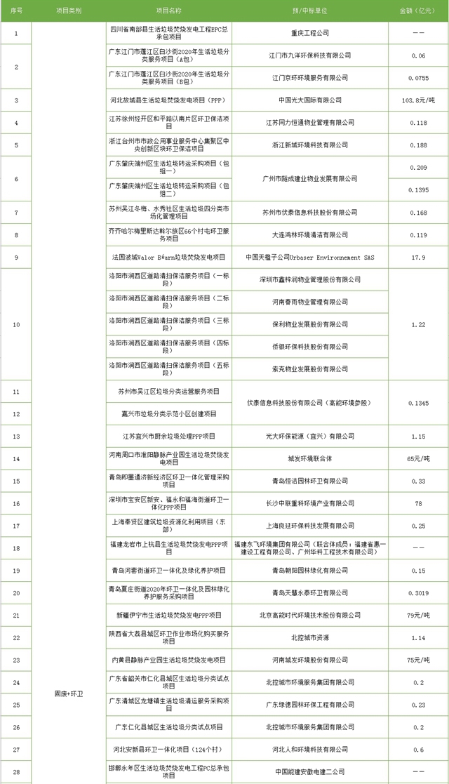 中標(biāo)價:生活垃圾處理費(fèi)單價為103.50元/噸,餐廚垃圾處理費(fèi)單價為276.11元/噸