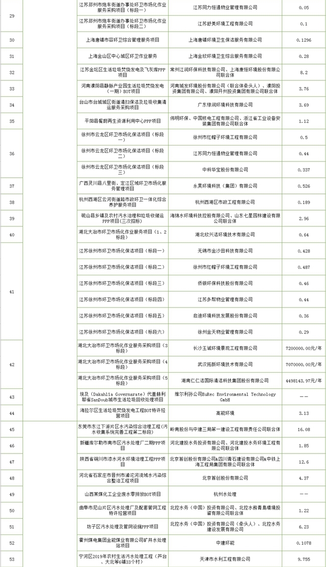 中標(biāo)單位:中國天楹子公司Urbaser Environnement SAS