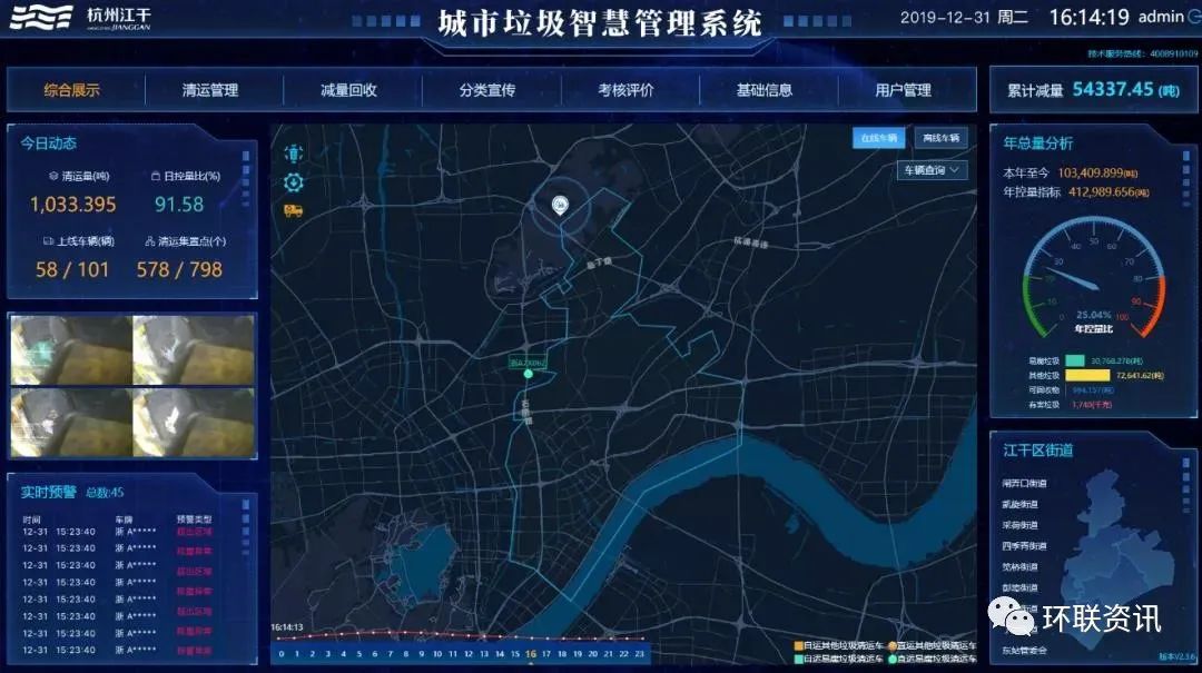 江干區(qū)將全區(qū)從事垃圾直運(yùn)的清運(yùn)車統(tǒng)一進(jìn)行車載稱重設(shè)備的安裝,“一車一點(diǎn)一ID”,全面監(jiān)測清運(yùn)軌跡、車速等日常運(yùn)行。通過車載動態(tài)稱重模塊、垃圾入口高清監(jiān)控等系統(tǒng)部件,實(shí)現(xiàn)裝載垃圾一秒稱重,并同步形成垃圾桶數(shù)量、垃圾重量等垃圾清運(yùn)圖像信息,提高垃圾清運(yùn)效率,有效解決清運(yùn)監(jiān)管缺失等問題。清運(yùn)車的實(shí)時上傳數(shù)據(jù),將垃圾的種類、重量等量化指標(biāo)時發(fā)送至后臺管理系統(tǒng),從而在垃圾清運(yùn)過程中精確計量各單位生活垃圾集運(yùn)點(diǎn)的垃圾產(chǎn)生情況,為全區(qū)垃圾分類減量控量提供技術(shù)和管理支撐。