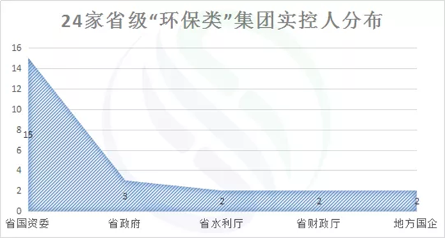 這24家省級(jí)環(huán)保集團(tuán)具有濃厚的地方政府背景,實(shí)控人分別是省國(guó)資委(15家)、省政府(3家)、省水利廳(2家)、省財(cái)政廳(局)(2家)以及地方國(guó)企(2家)。