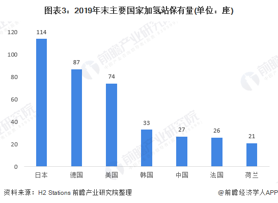 日本在氫燃料電池汽車基建配套建設(shè)領(lǐng)先,加氫站保有量全球第一,日本政府提供財政補(bǔ)貼支持氫能和燃料電池的研發(fā)和示范,重點支持加氫站建設(shè),截至2019年底,日本擁有114座公共加氫站,加氫站保有量全球第一。