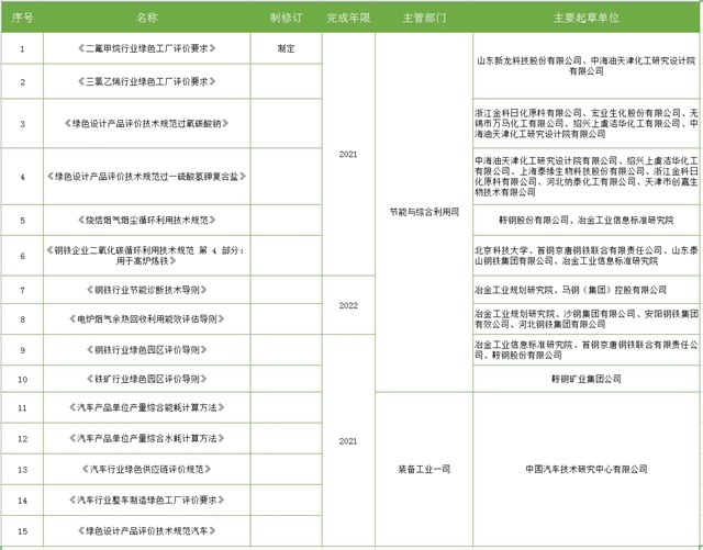 2020年綠色制造標(biāo)準(zhǔn)項(xiàng)目計(jì)劃表——