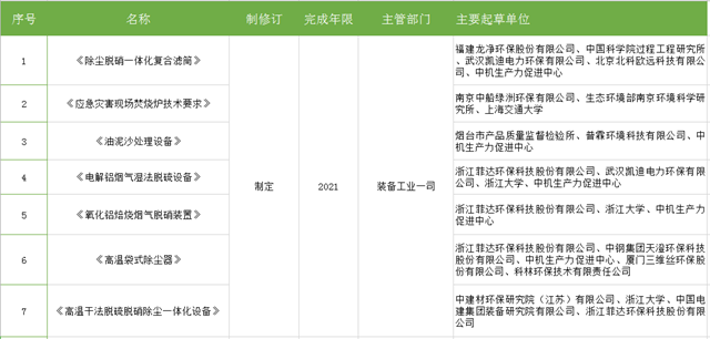 2020年環(huán)境保護(hù)裝備標(biāo)準(zhǔn)項(xiàng)目計(jì)劃表——