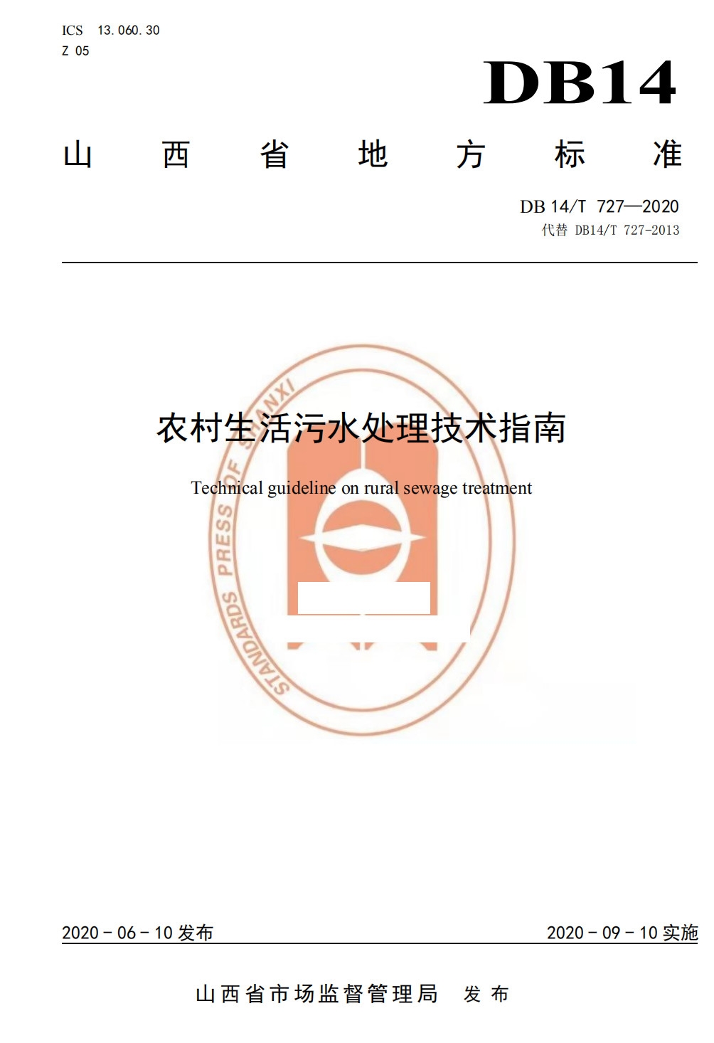 山西省《農(nóng)村生活污水處理技術(shù)指南》(DB 14/T 727-2020)9月10起施行
