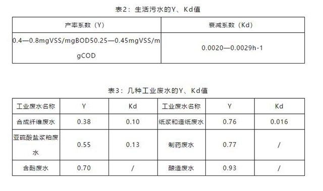 實際活性污泥處理系統(tǒng)工程中所采用的θC(污泥齡.d)值,應(yīng)大于θmin值,實際取值按公式1/θmin= Y×umax-Kd乘以安全系數(shù)。安全系數(shù)一般在2—20。也可以根據(jù)經(jīng)驗進行取值,參照表1數(shù)據(jù)。